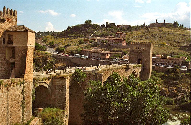 旧市街から見たサン・マルティン橋 14世紀に建築された要塞のようなゴシック様式の石橋 タホ川に架かる27mのアーチは圧巻