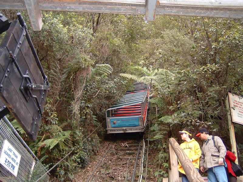最大傾斜52度(世界一)のケーブルカーで谷底へ |