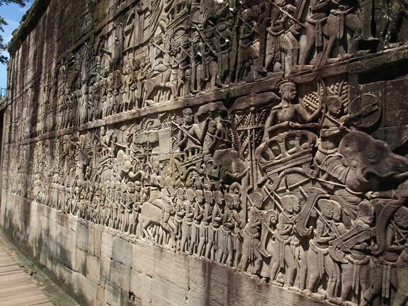 象のレリーフが並ぶ象のテラス |