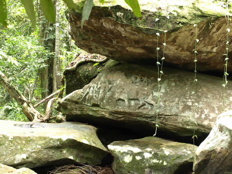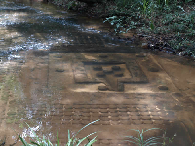 ![]() 川底に彫られた2m四方のヨニと無数のリンガ |