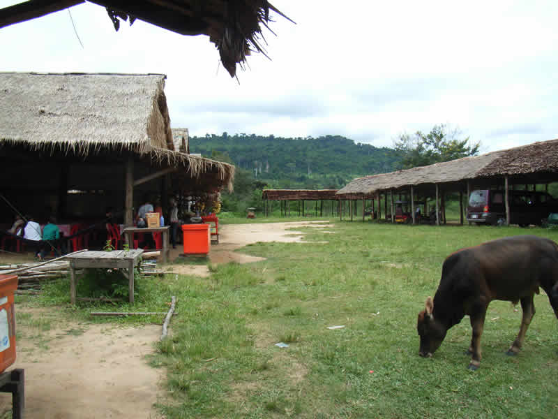![]() 駐車場とそこに並ぶ食堂 ここから40分以上も急な山道を歩いて登っていきます |