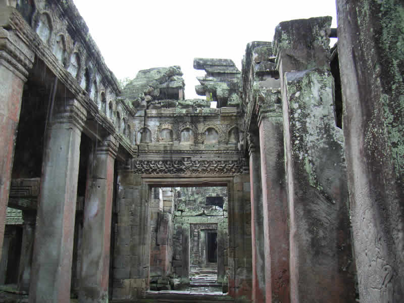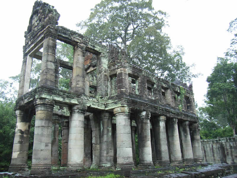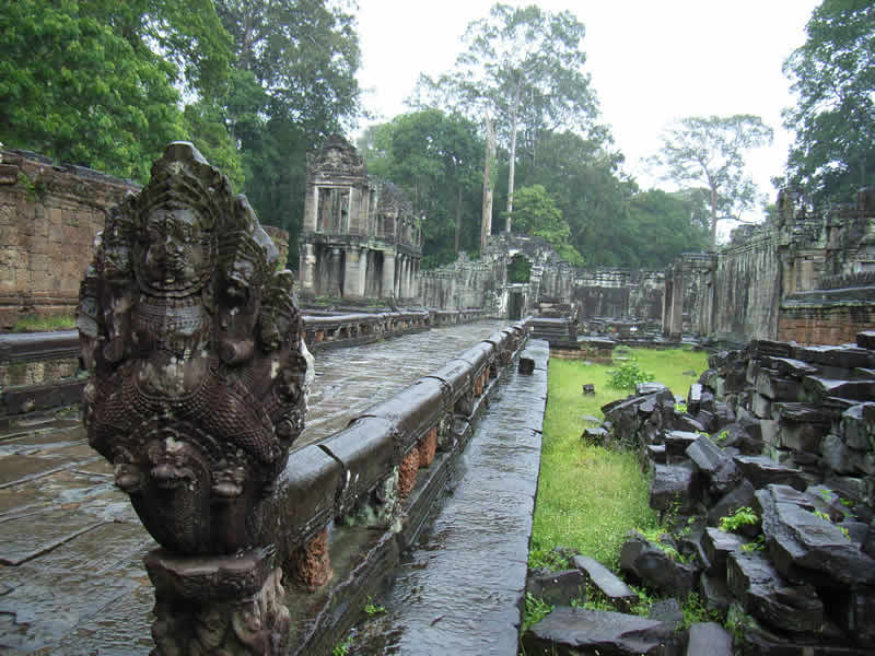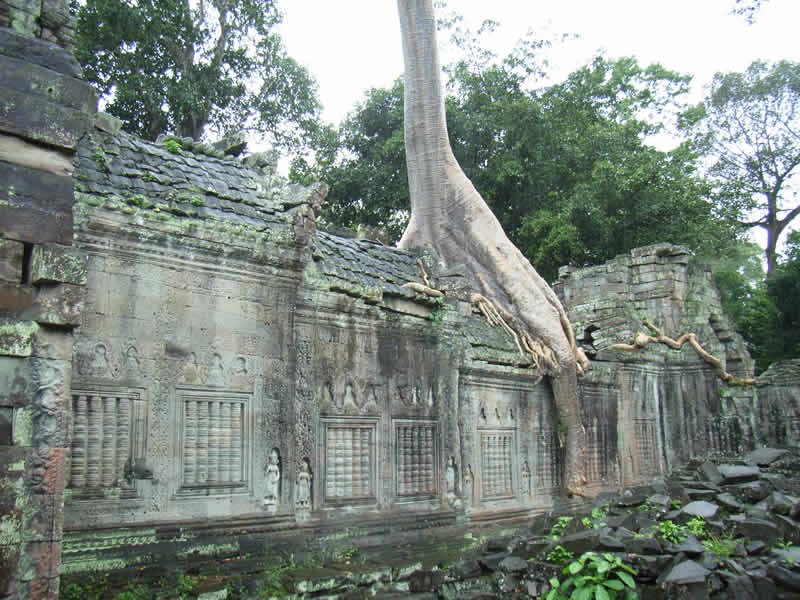 東側第二周壁の美しい彫刻に食い込むスポアンの木