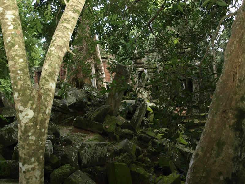 ラテライト(焼煉瓦)の塔に食い込むスポアン |