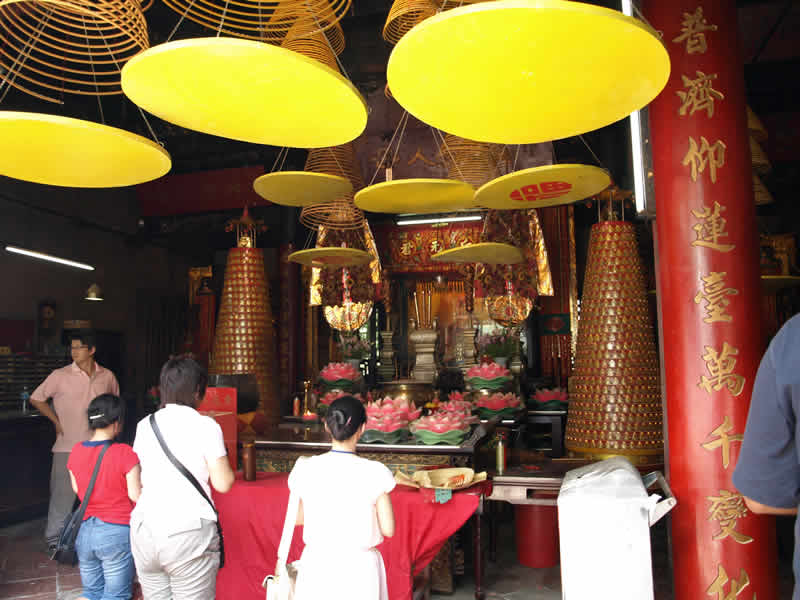 天井につられている巻線香は約1ヶ月燃え続け、航海中もお参りを続けているとみなされます