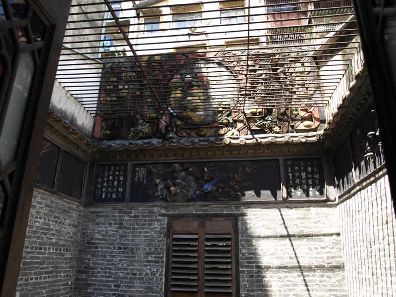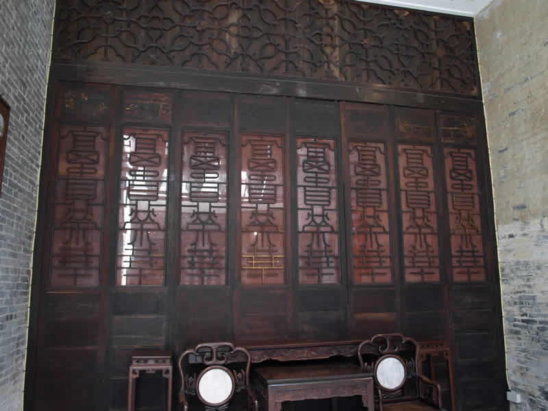 中国らしい「富貴栄華」の浮き彫りが施された壁面