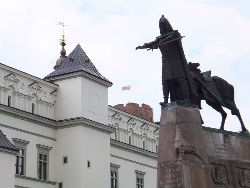 大聖堂の横に立つ街の建設者 ゲディミナス大公の像 |