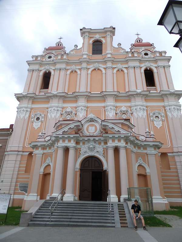 ![]() 市庁舎広場に面する聖ペテロ&パウロ大聖堂 リトアニアカトリックの総本山 外観はゴシック建築だが、内部はバロック様式となっている |