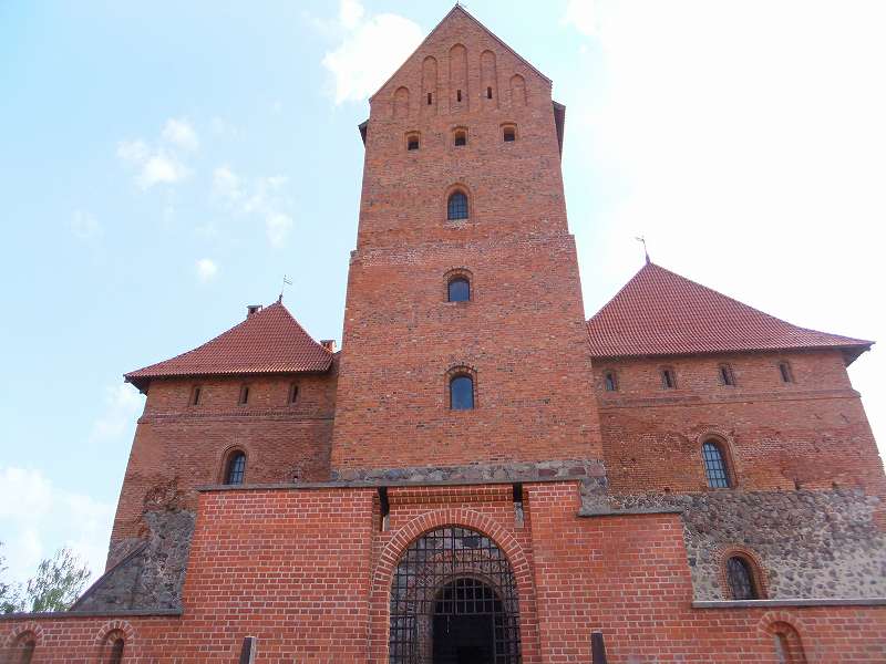 ![]() トラカイ城の本丸 今は水の無い堀に架かる橋を渡って内部へ |