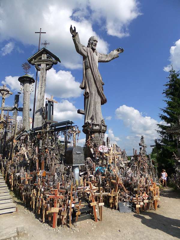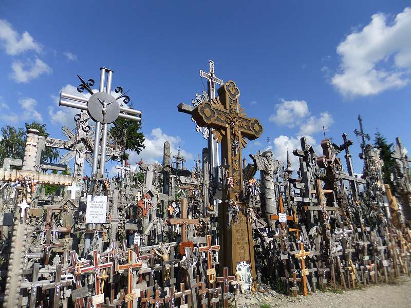 ![]() ラトビア国境に近いシャウレイにある十字架の丘 草原の中に10万以上の十字架が立つ小さな小山がある |
