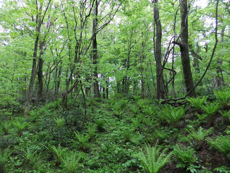 樹齢100年を超えるブナの自然林は倒木や下草もそのままの状態が保たれている |