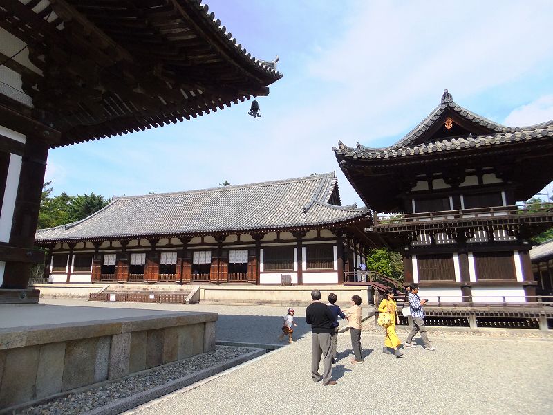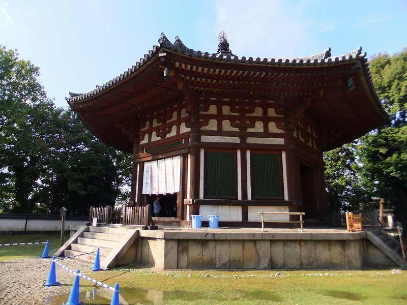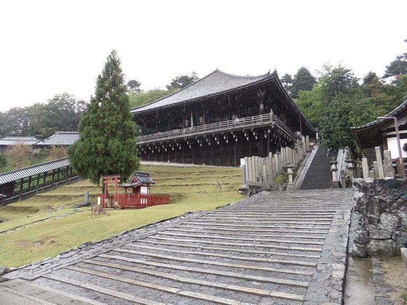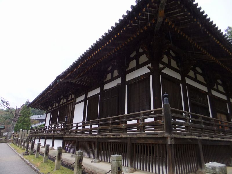 三月堂とも呼ばれるこの建物は正堂と礼堂の2つの建物であったが、鎌倉時代に繋いだため途中で様式が変わる珍しい建物になった
